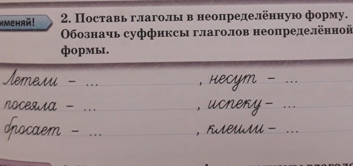 поставь глаголы в неопределённую форму обозначь суффиксы глаголов неопределённой формы