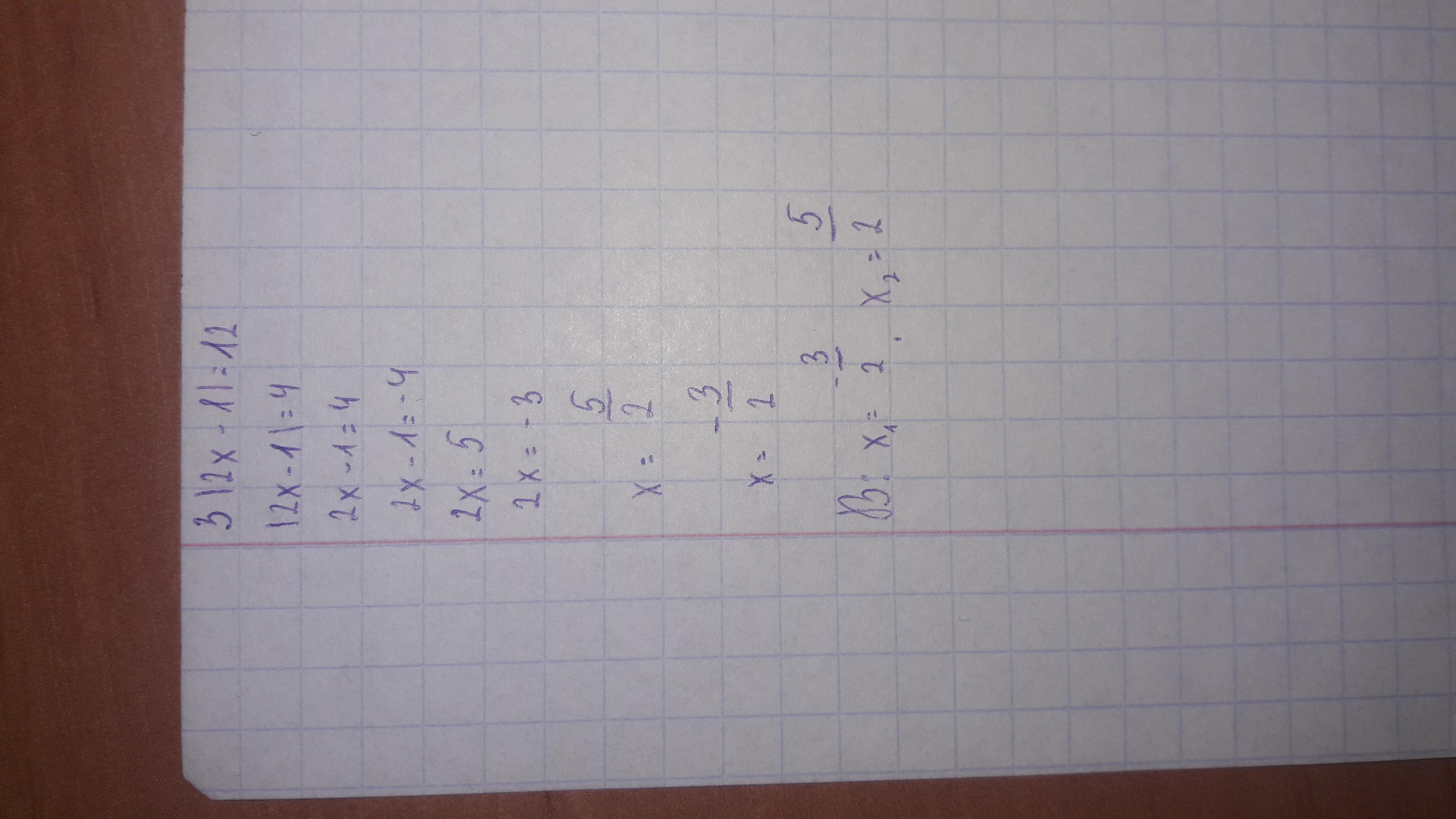1)3|2x-1|=12 делим обе части уравнения на 3