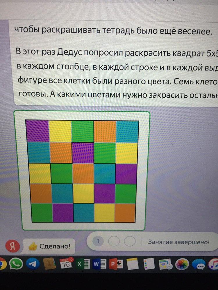 фигуре все клетки были разного цвета. Пять клеток уже