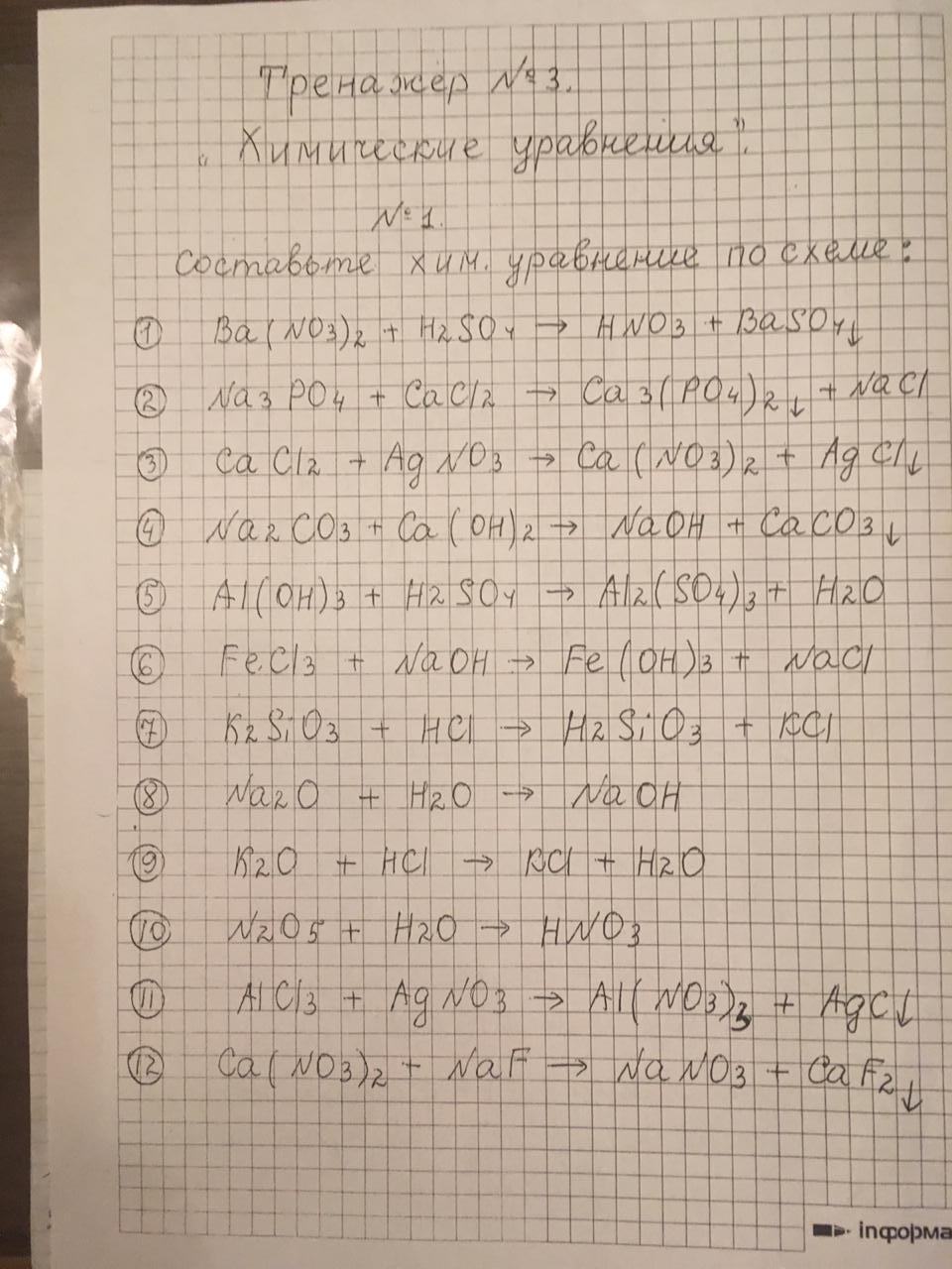 6) 3BaCl2 + 2Na3PO4 = Ba3(PO4)2↓ + 6NaCl