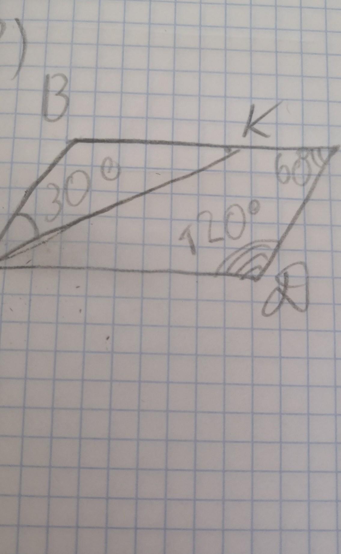 Угол С равен углу А ,из этого угол DAK равен 60- 30 = 30°