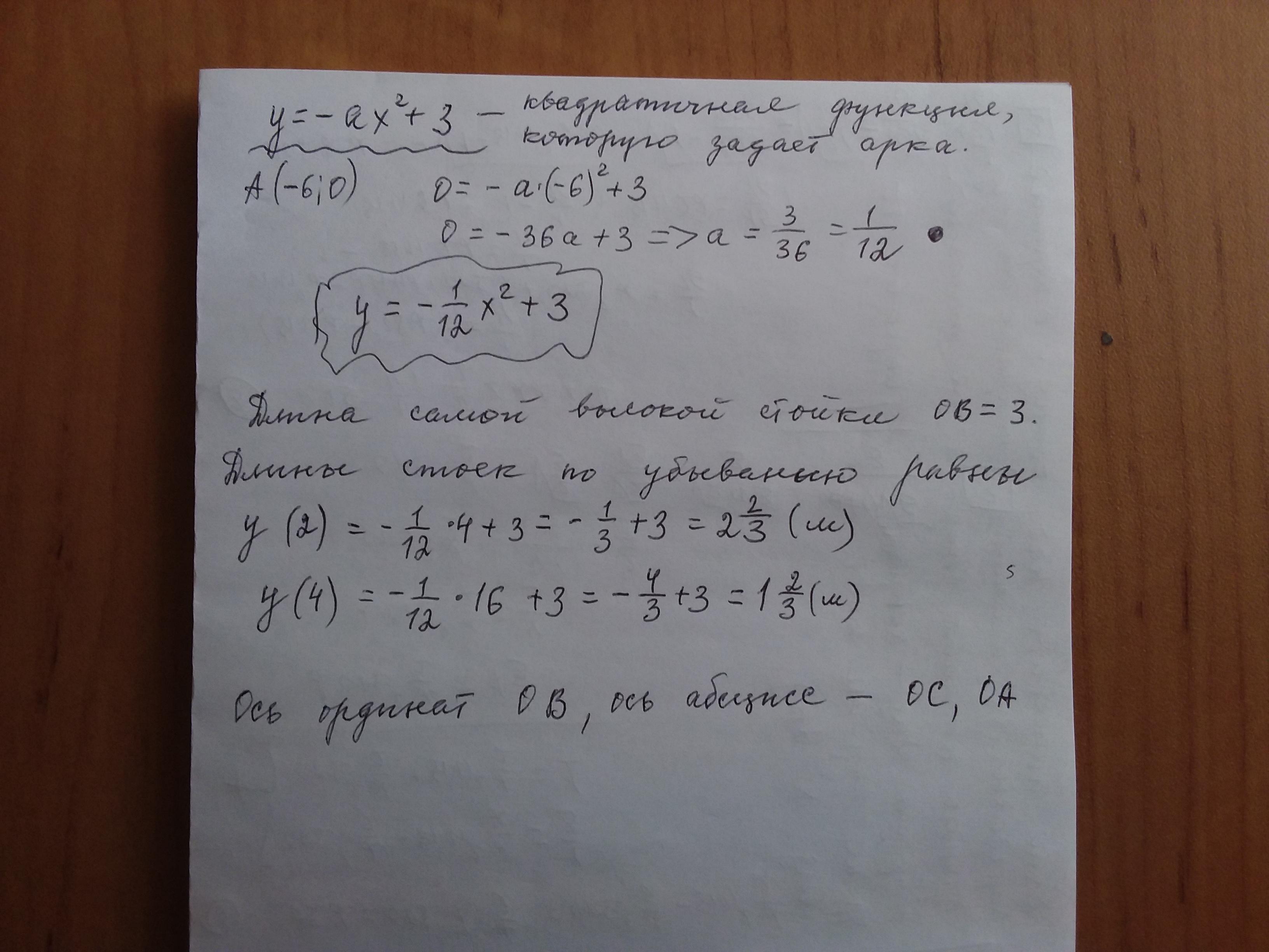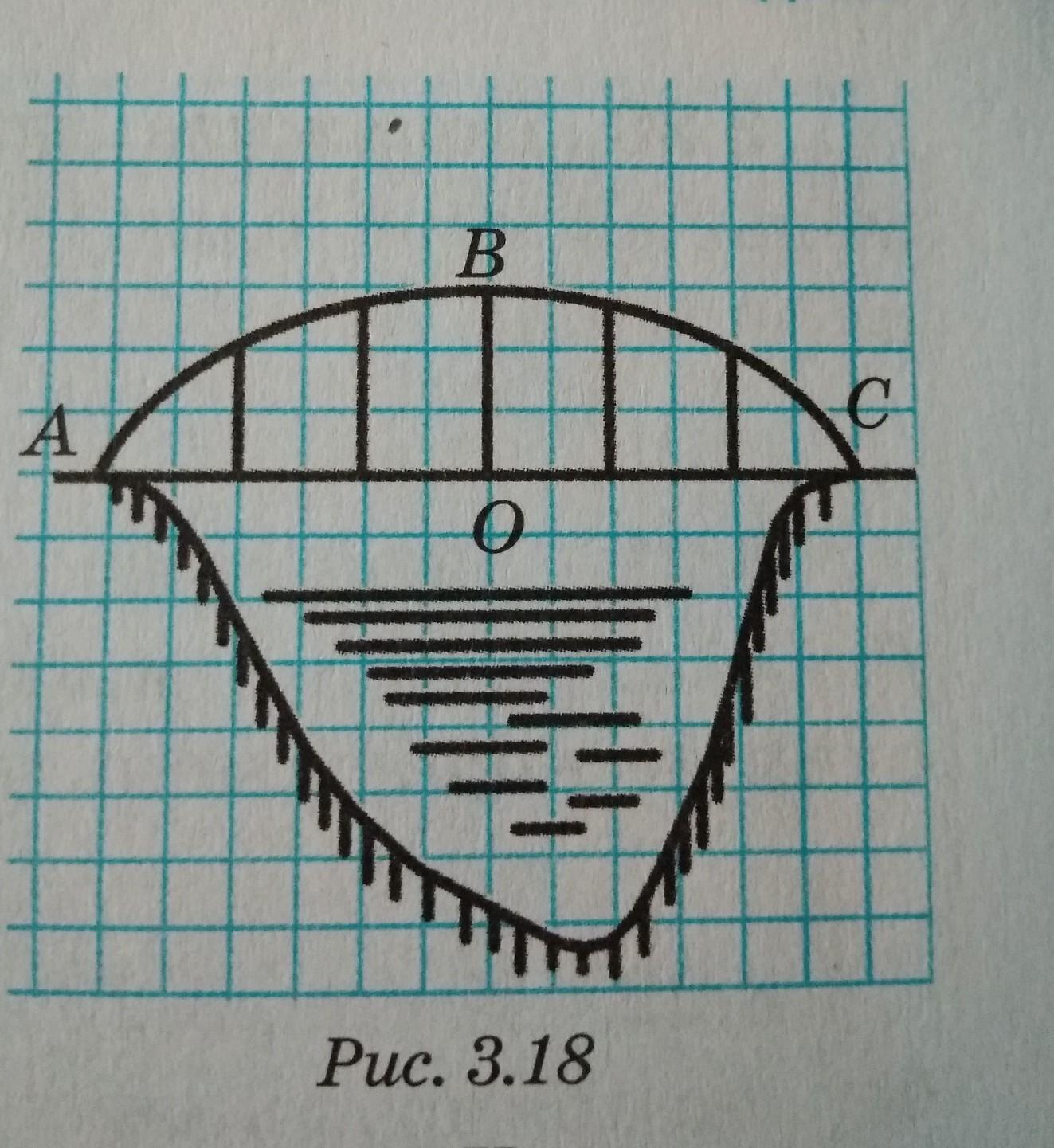Арка моста является дугой параболы. Эта арка через одинаковые расстояния подбирается 5 стойками, которые делят отрезок AC на 6 одинаковых отрезков (рис. 3.18). Найдите высоту других стоек, если BO = 3 м и AB = 12 м.