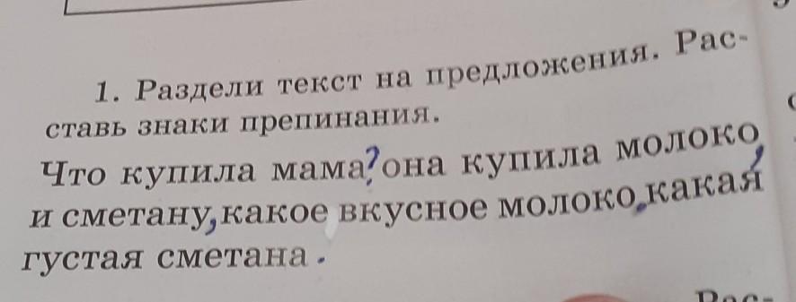 Что купила мама? Она купила молоко и сметану. Какое вкусное молоко! Какая густая сметана!