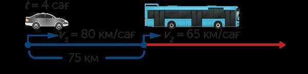 Из двух автобусов на расстоянии 75 км одновременно отправились автобус и машина. автобус ехал со скоростью 65 км / ч, а машина ехала со скоростью 80 км / ч. Через 4 часа сколько их расстояние?