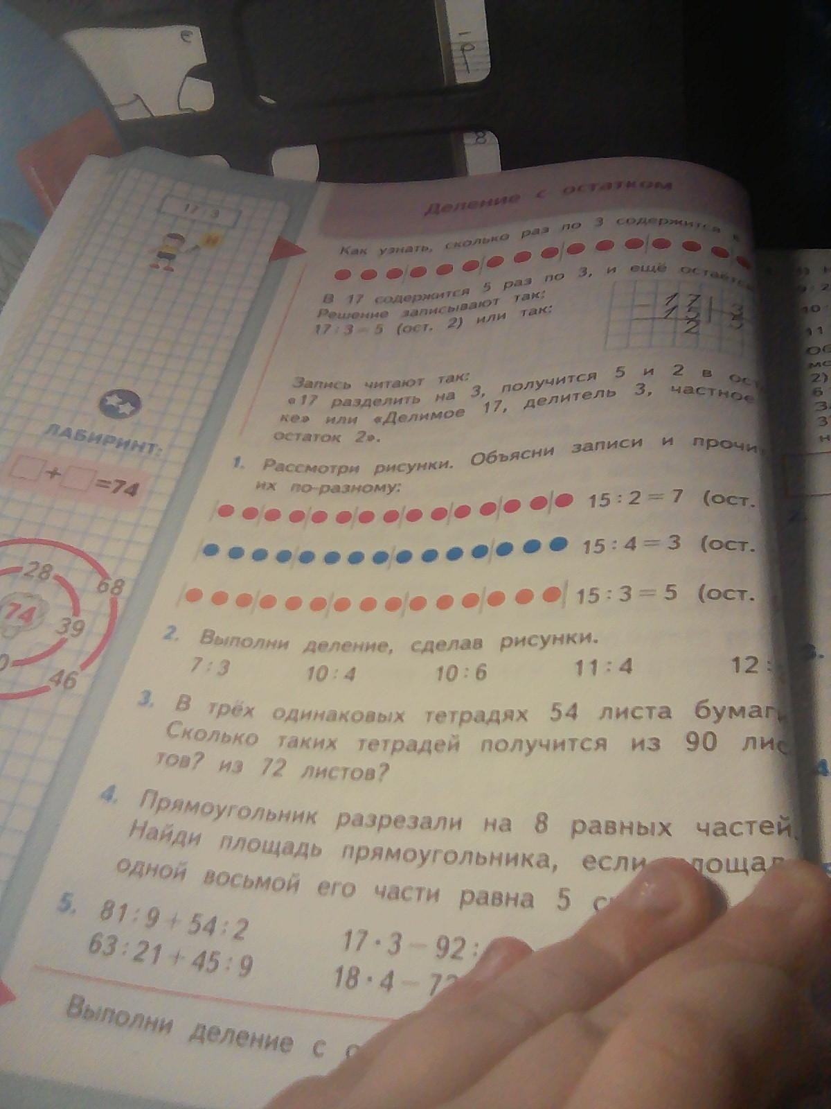 в трех одинаковых тетрадях 54 листа, значит в одной 54:3=18