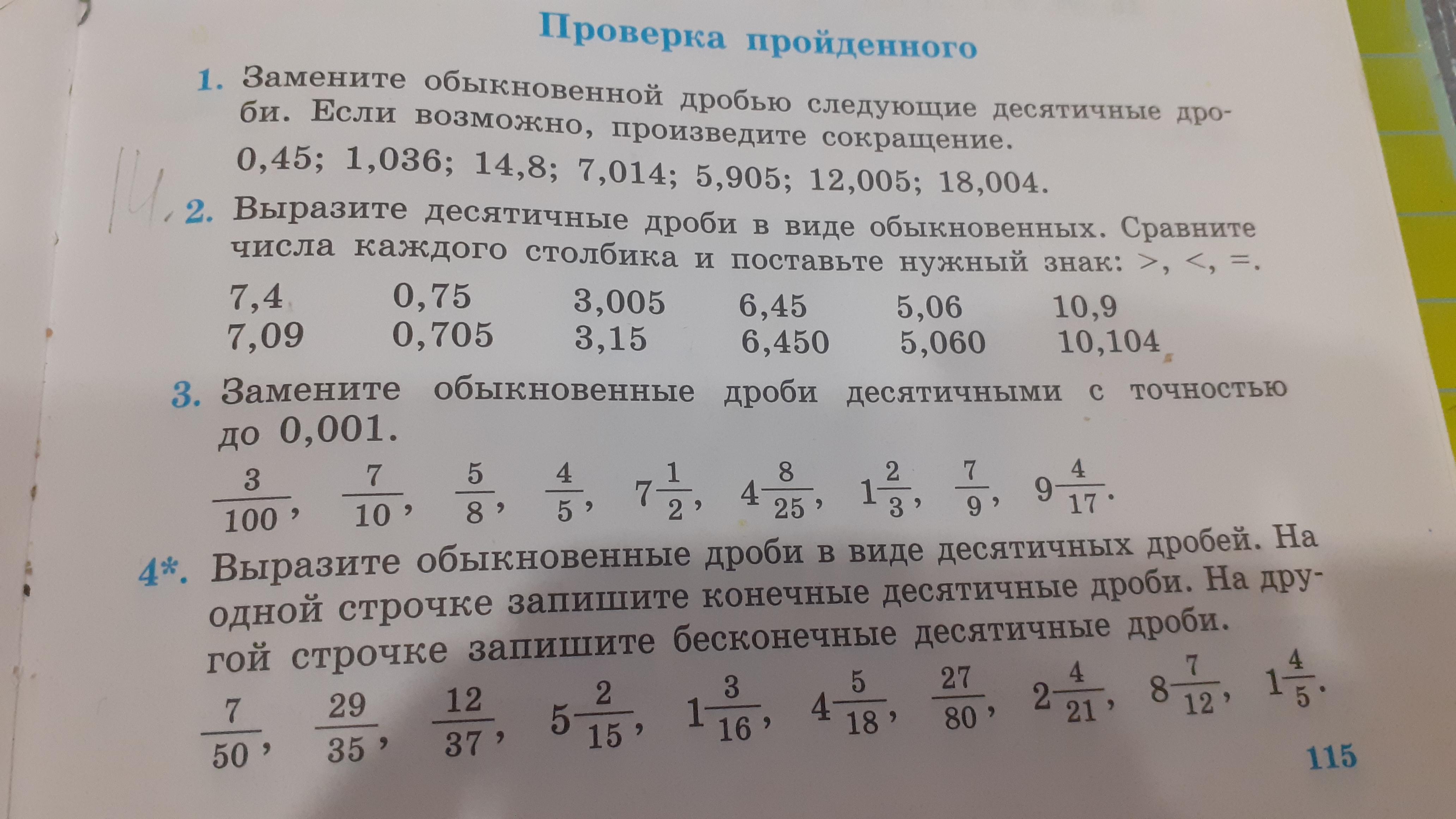 Замените обыкновенной дроби следующие десятичные дроби, если возможно, произведите сокращении. 0,45; 1,036; 14,8; 7,014; 5,905; 12,005; 18,004. (Только нашла что фотку можно добавить, вот эти задание) заранее спасибо!