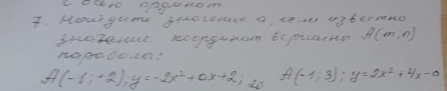 Найдите значение a, если известно значение координат вершины A (m;n) параболы: