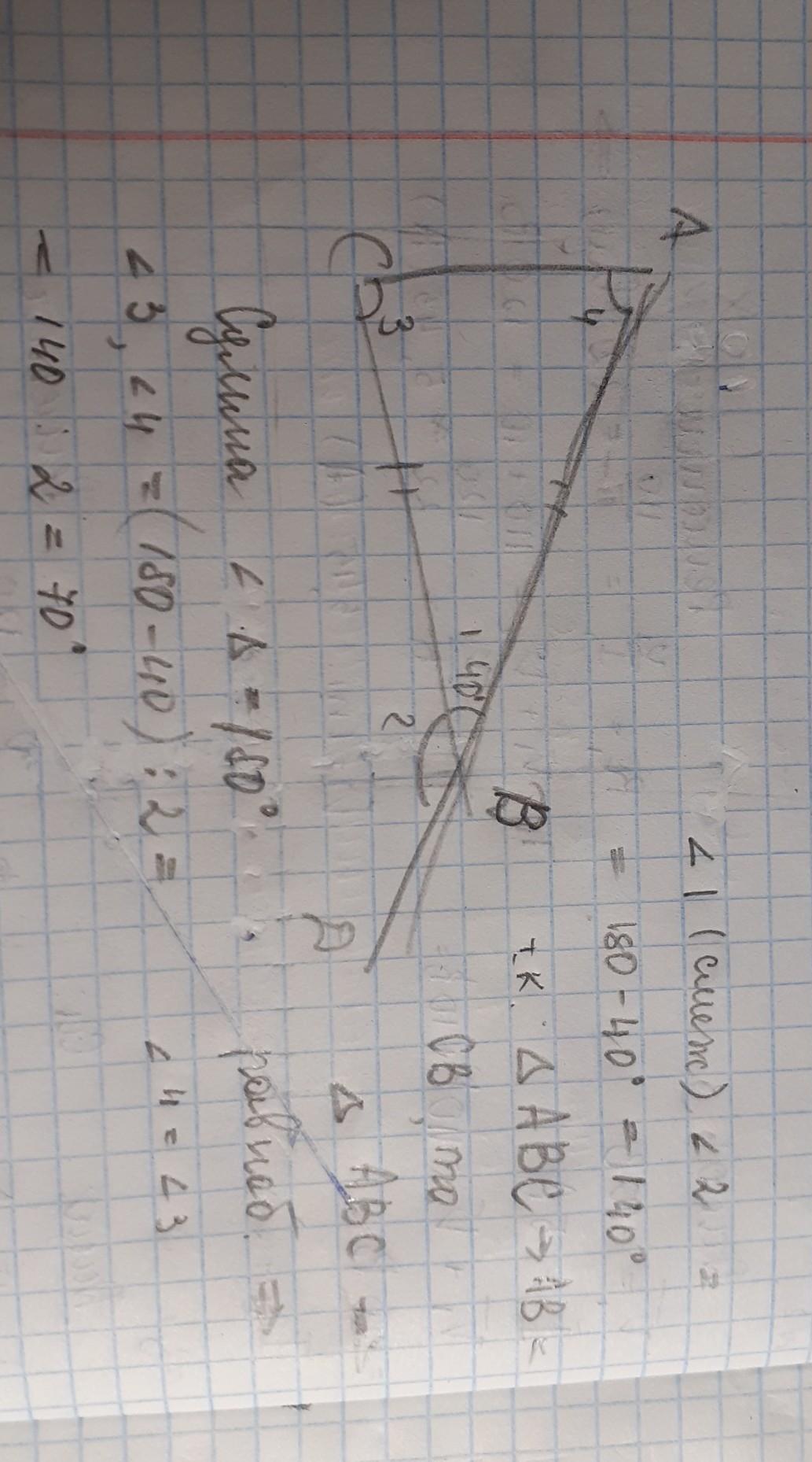 2. угол АВС и угол СВD - смежные следовательно, их сумма равна 180°. угол СВD= 180-40= 140°
