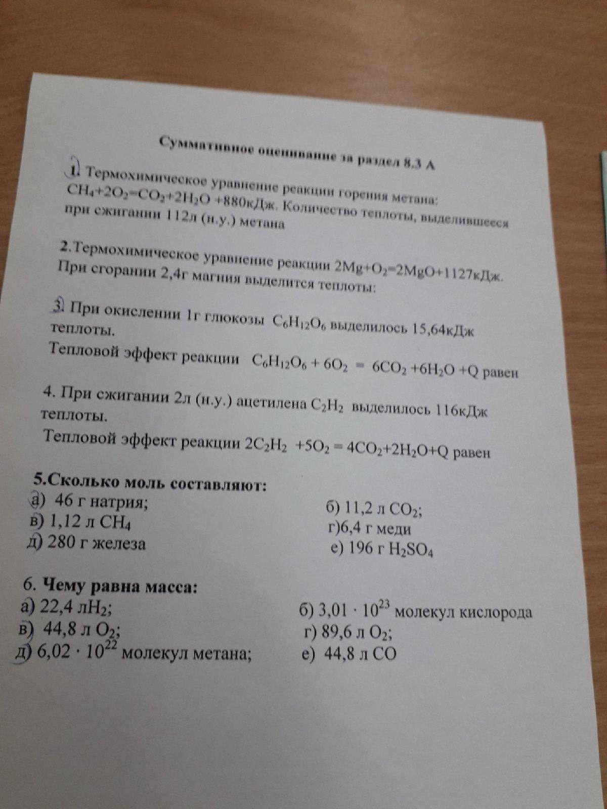 1. CH4+2O2=CO2+2H2O+880кДж -над метаном ставим 112л-это дано, под ним ставим 22,4л-это объем при н.у, а над 880 кдж ставим- х,получилась пропорция 112/880=х/22,4, х=112*880/22,4,х=4400кдж