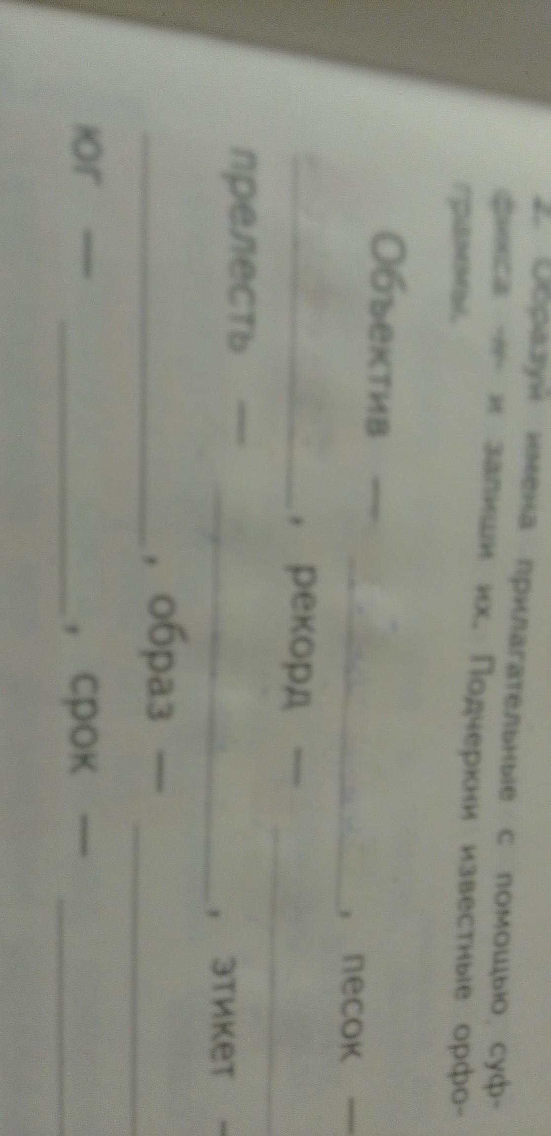 образуй имена прилагательные с помощью суффикса и запиши их подчеркни известные орфограммы.