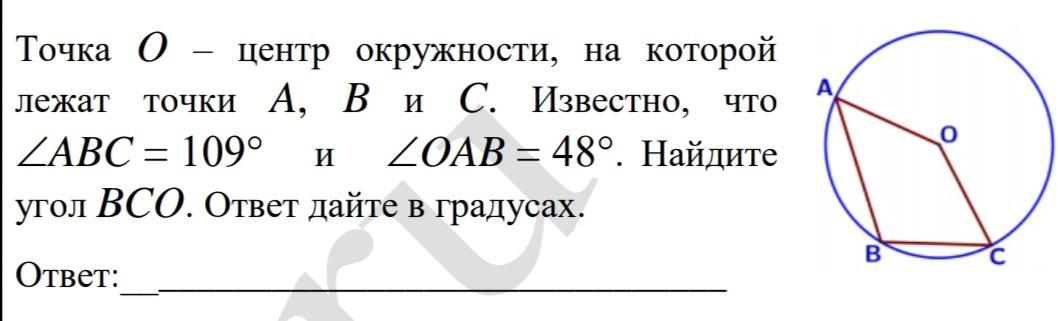 ∠ВСО=360-(∠АВС+∠ОАВ+∠АОС)=360°-(109°+48°+142°)=61°