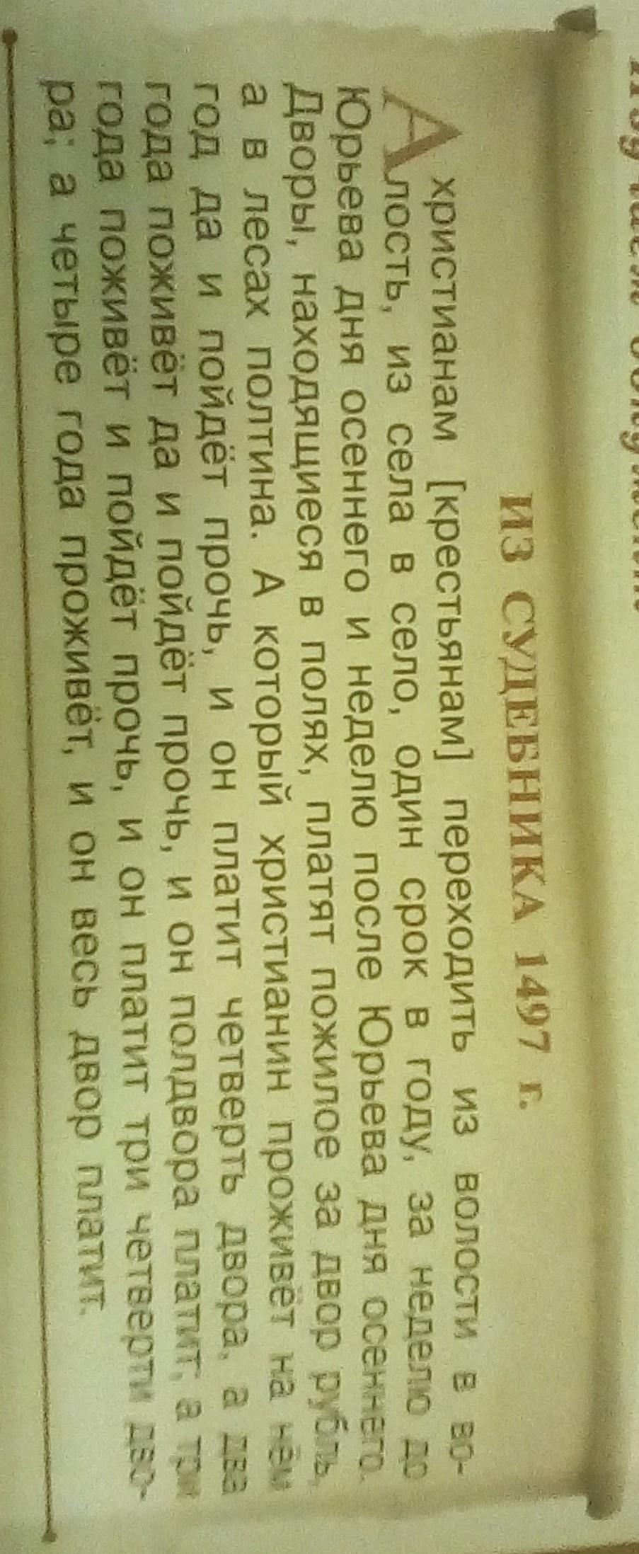 1. Какими мерами, закреплёнными в Судебнике 1497г., власти стремились удержать крестьян во владениях служилых людей?