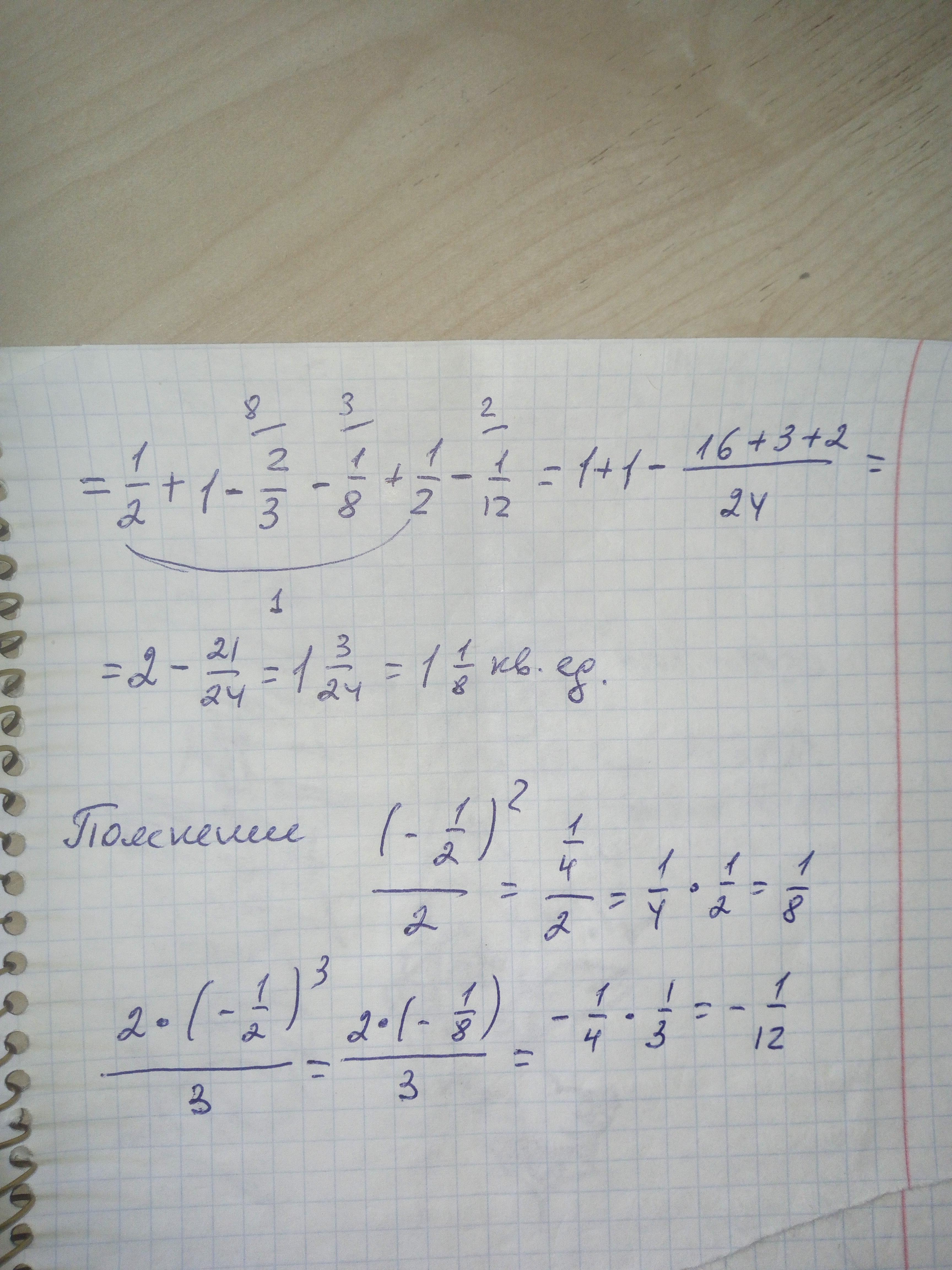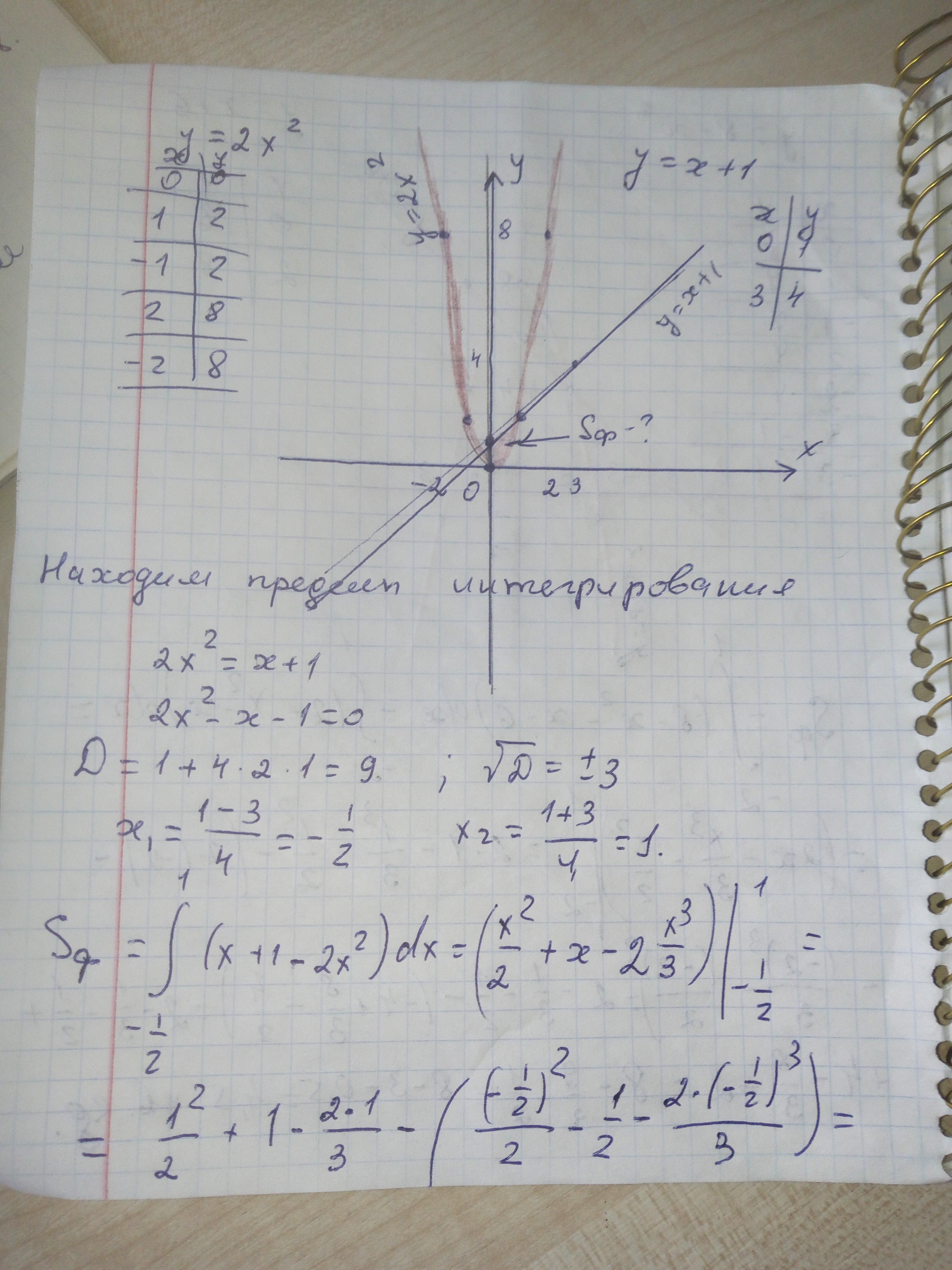 ОГО просто шикарно таблицы с точками, уравнение , дискриминант.Обычно ,мне кидают график и сразу интеграл ,без проверки точек соприкосновения,мол:"они и так видны".Весьма и весьма благодарен.
