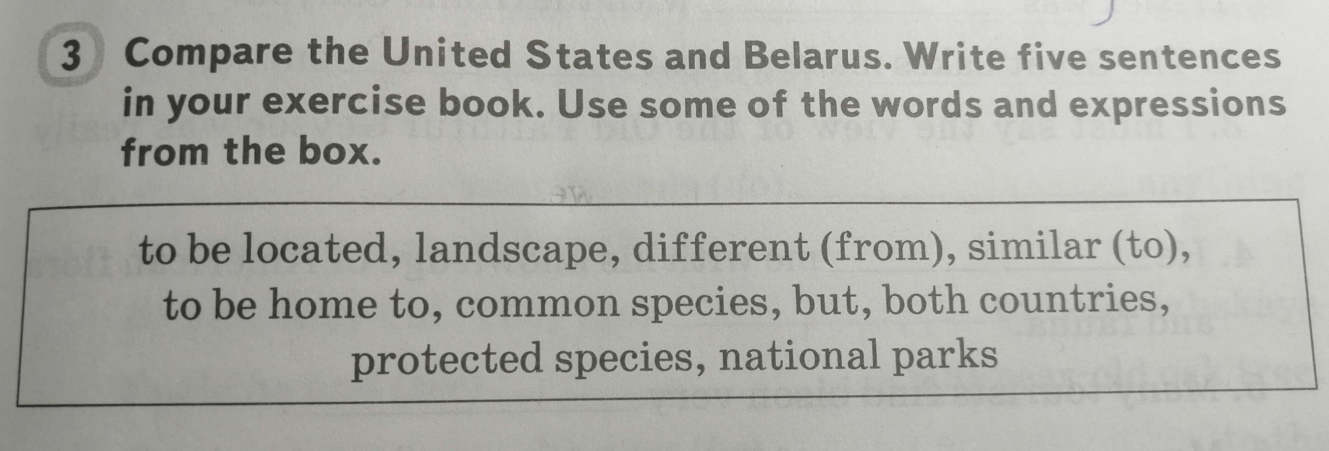 The USA has bigger population than Belarus. There are in the US a lot of people from a lot of counties live. But Belarus has located people only. Both counties have national parks.