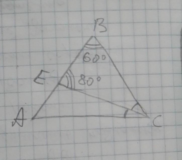LECA=180°-80°-60°=40° (т.к. сумма углов треугольника равна 180°)