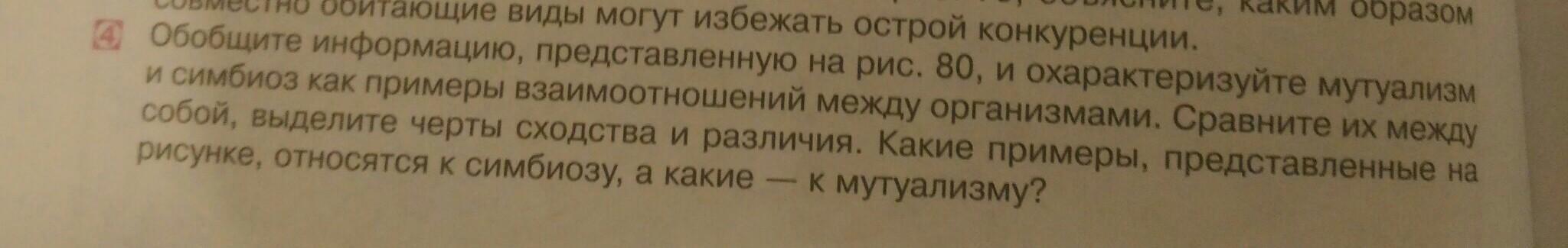 Ответ: давайте попробуем вслепую. Мутуализм - это разновидность симбиоза, при которой организмы не могут существовать друг без друга. Например, лишайники- это мутуализм гифов грибов и водорослей. Или микориза--сожительство почвенной грибницы с корнями растений. Клубеньковые бактерии и корни бобовых. Рак отшельник и актиния, шмель и клевер. Если сожительство организмов выгодное, но не обязательное, это другие виды симбиоза, например, комменсализм. Пример: репей на шерсти животного.