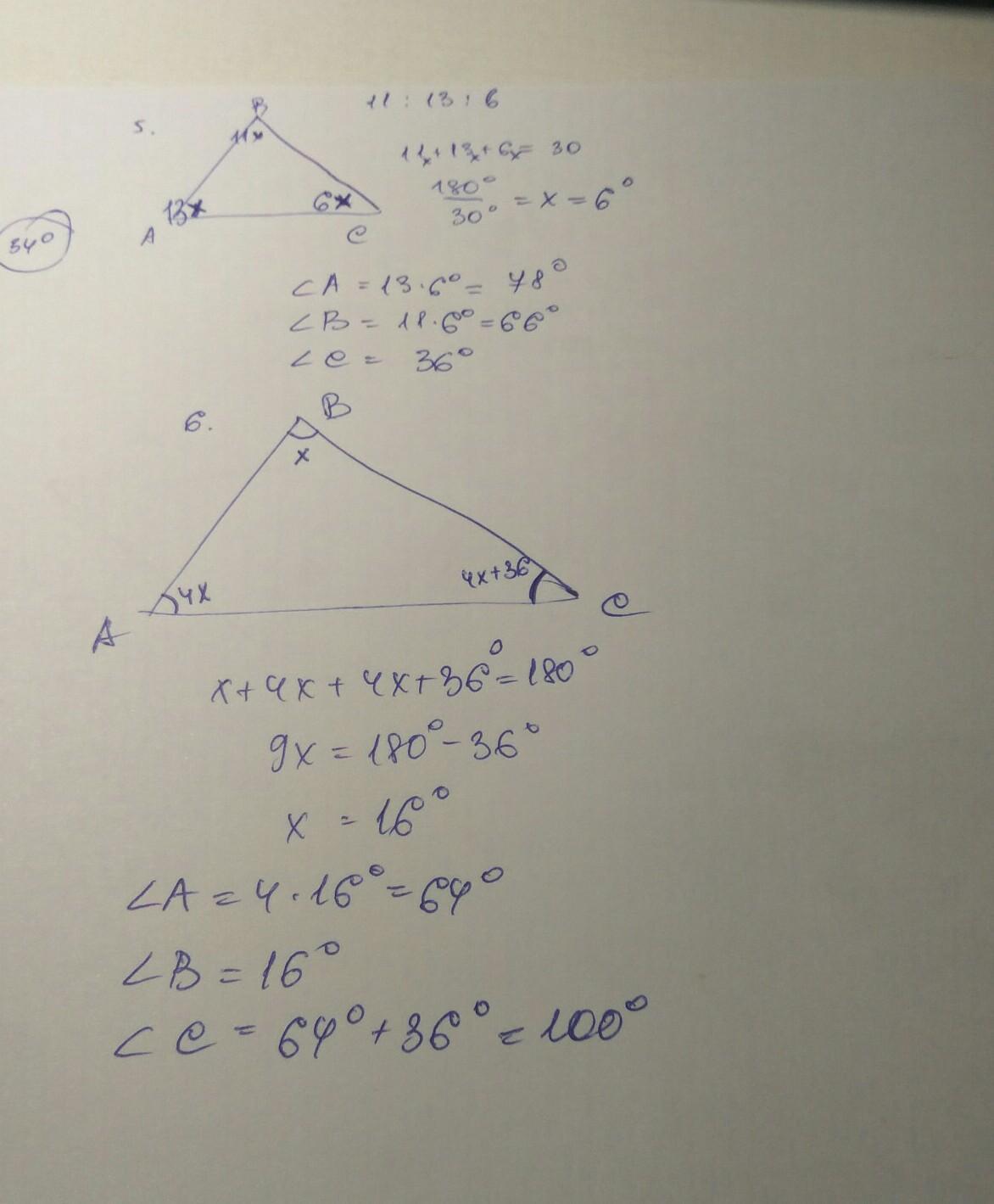 5. Углы треугольника относятся как 11:13:6 найдите углы этого треугольника.