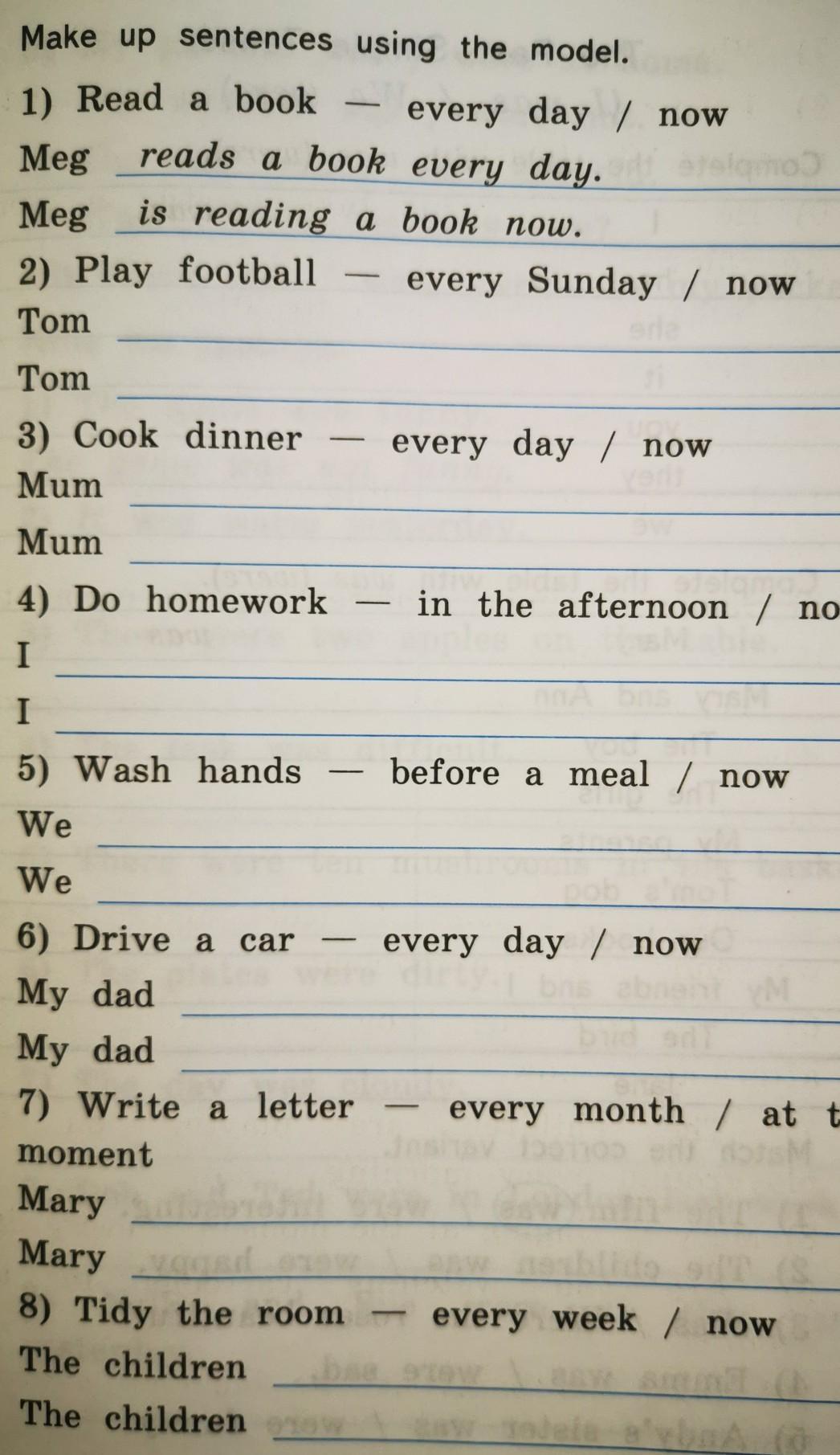 4) I do homework in the afternoon