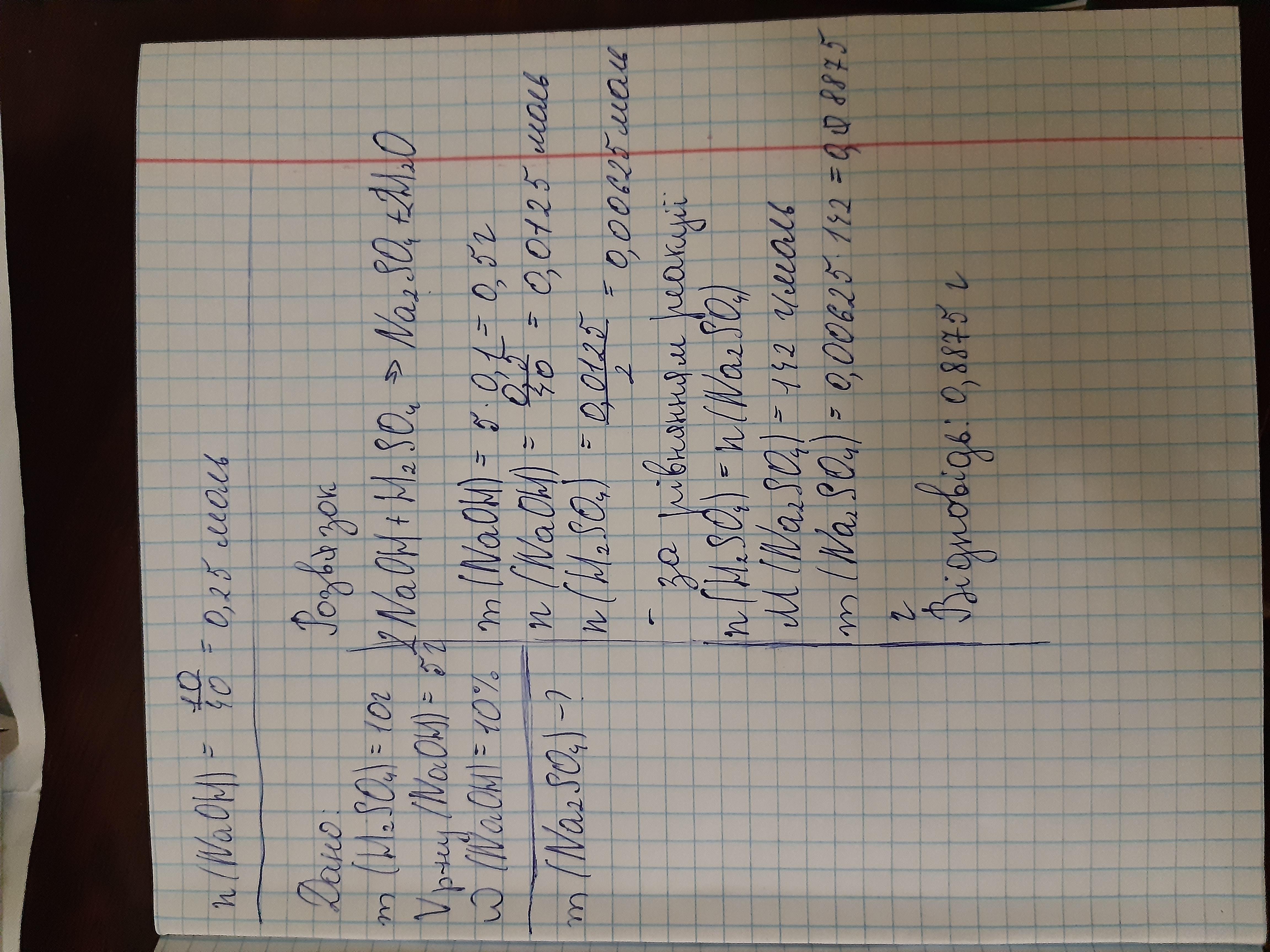 Яку масу солі можна добути при нейтралізації сульфатної кислоти масою 10 г розчином натрій гідроксид масою 5 г з масовою часткою натрій гідроксида - 10% ?