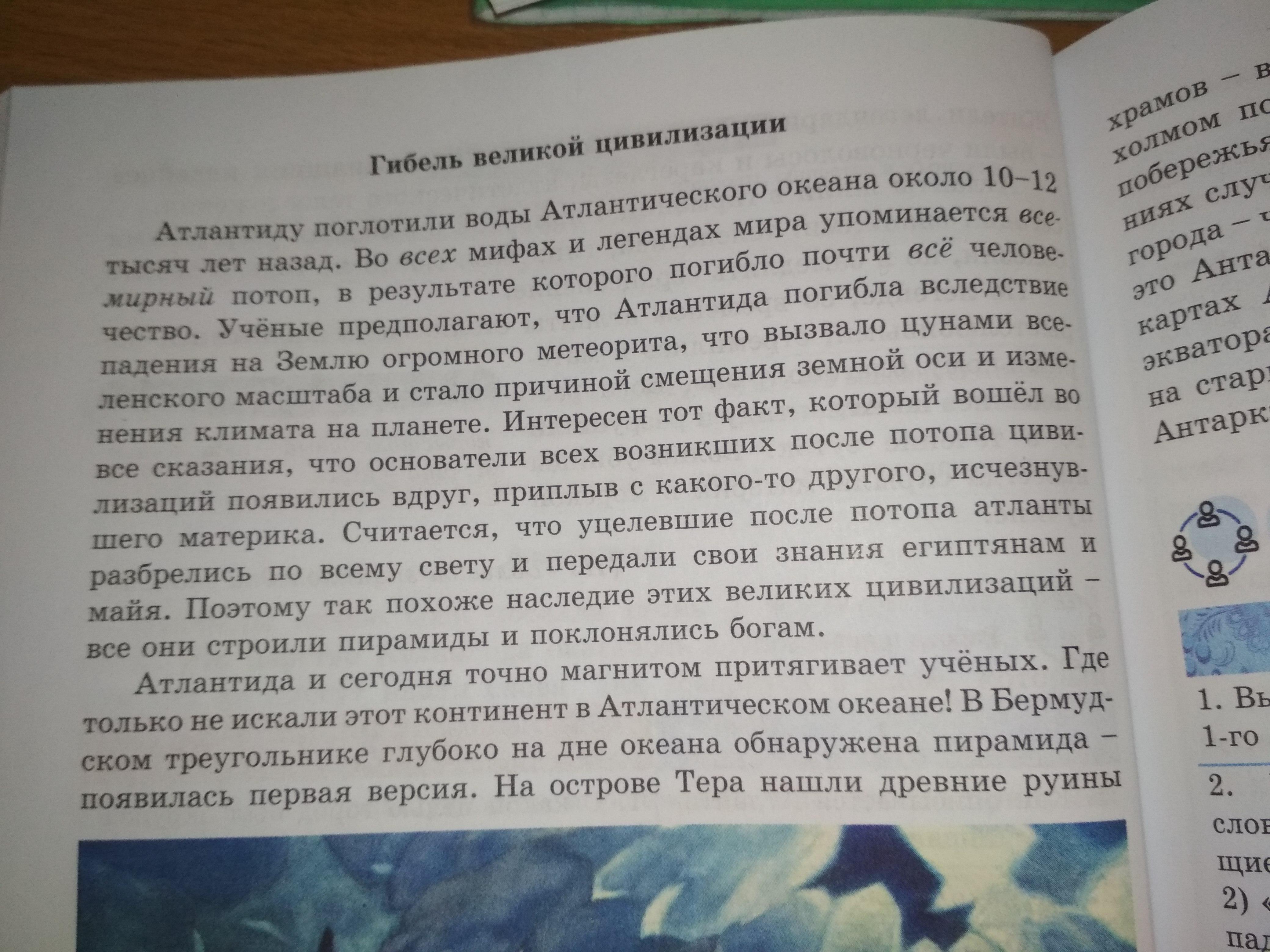 1) Найдите в тексте Гибель великой цивилизации в втором абзаце ключевые слова.