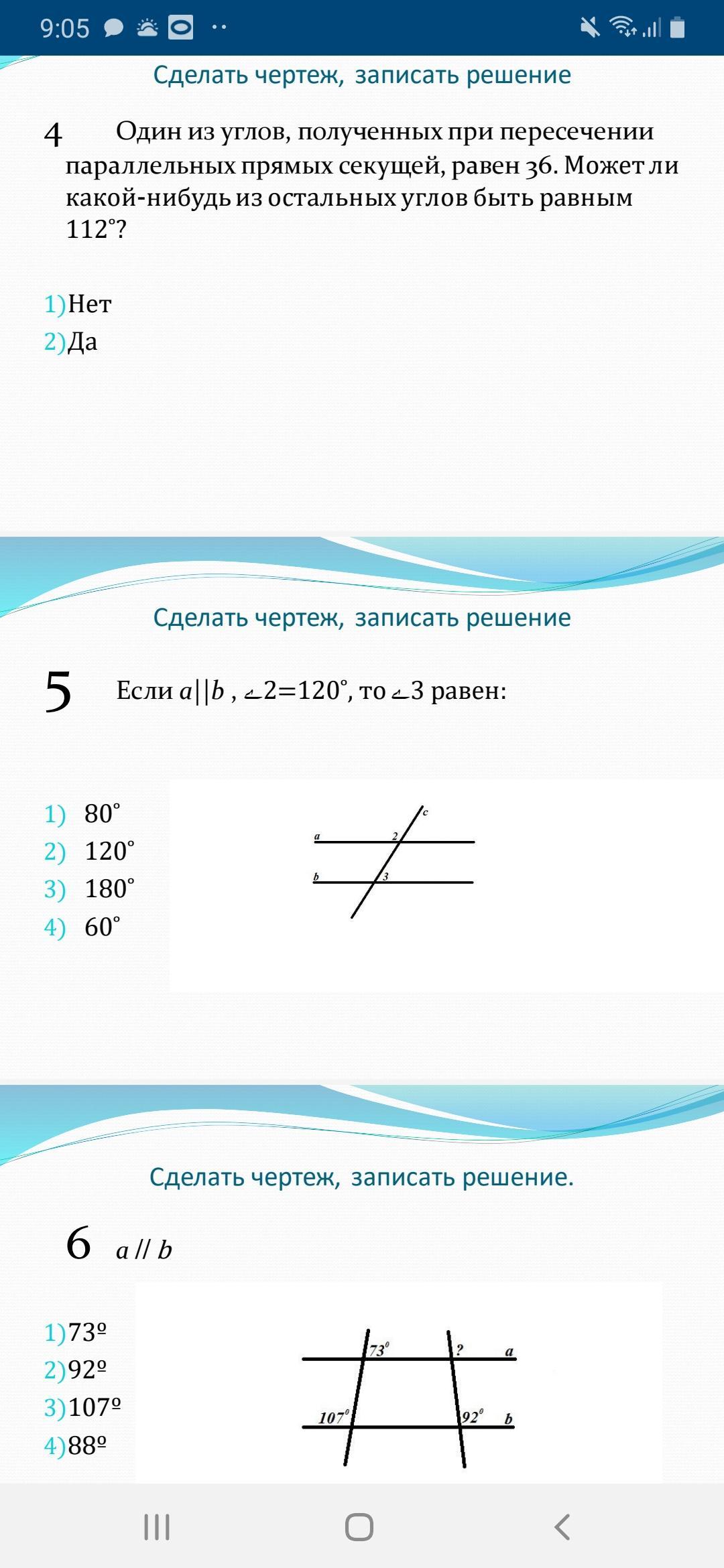 6. ∠1=73°; ∠6=∠1=73° (как вертикальные)