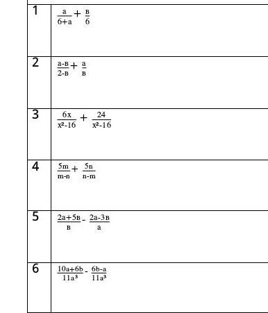 Ответ:1) (6a+6b+ab)/(36+6a)