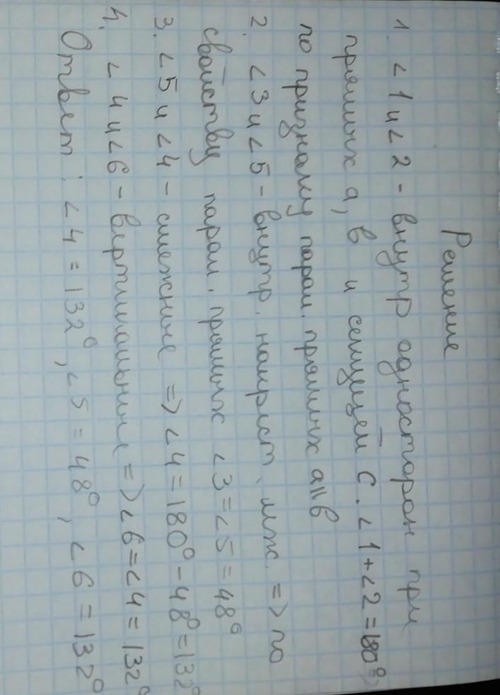 Угол 4=132°, угол 5=48°, угол 6=132 °