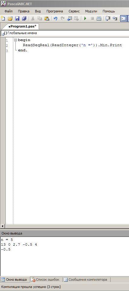 ReadSeqReal(ReadInteger('n =')).Min.Print
