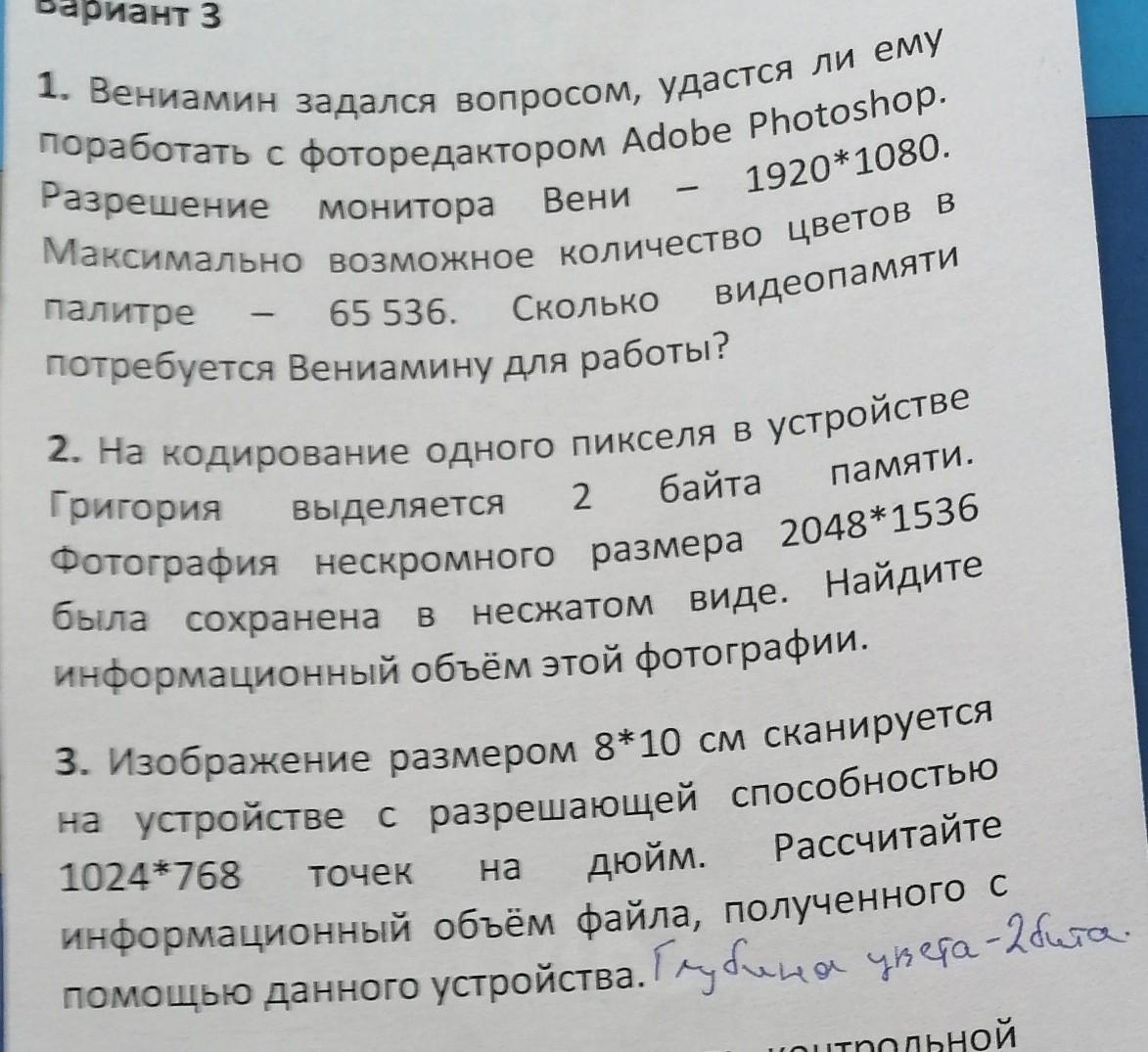 3) 8/2.54 * 10/2.54 * (1024*768) * 2 = 19503552 бит