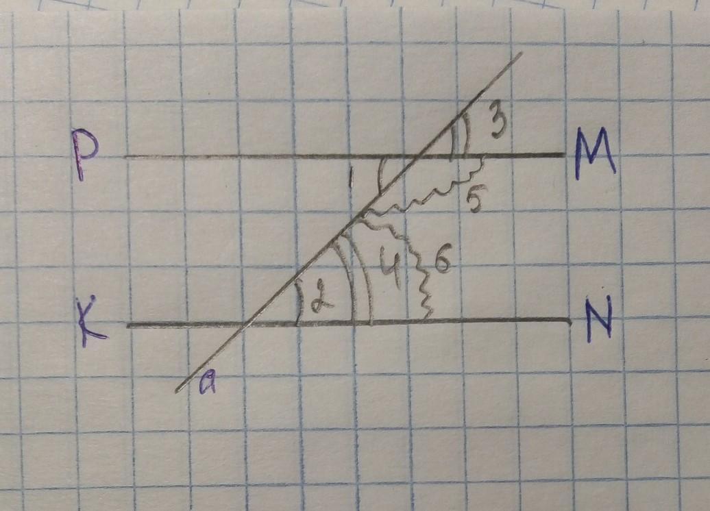 Как на крест лежащие углы при прямых РМ и КN и их секущей а
