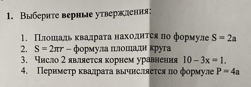 1. Данное утверждение неверное. Площадь квадрата находится по формуле .