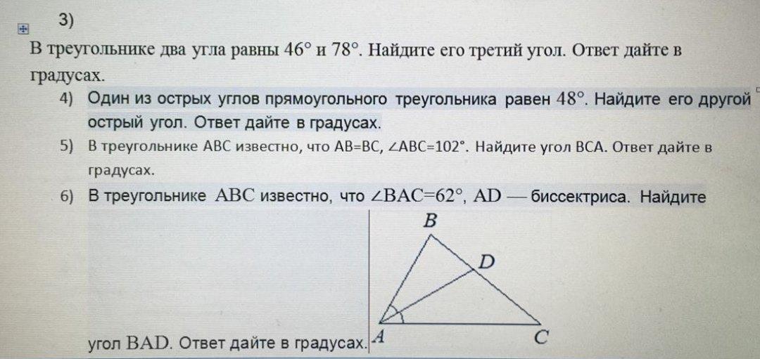 4)Один угол равен 48°, 2=90°, так как треугольник прямоугольный