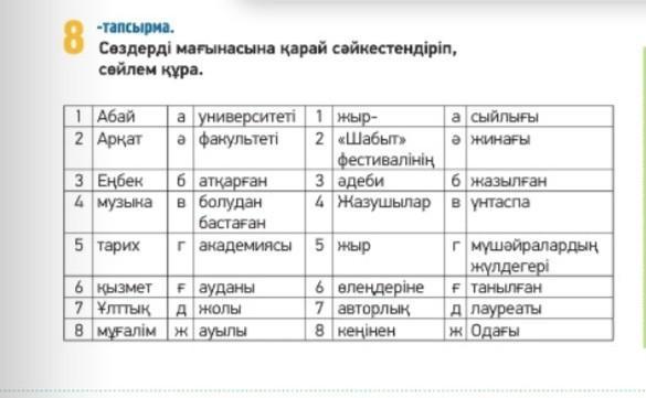 1-д,2-г,3-ә,4-а,5-ғ,6-в,7-ж,8-б