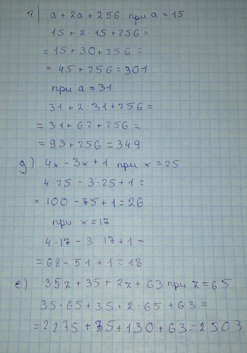 е) 35z + 35 +2z + 63, если z = 65 помогите пж решить