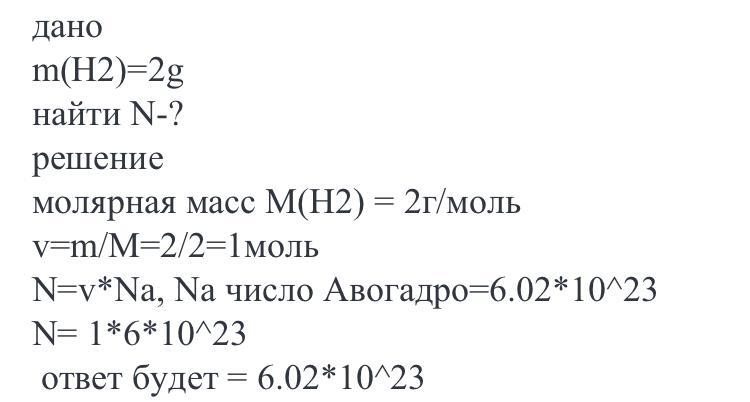 N(H2) = Na * n = 6*10²³ * 1 = 6*10²³ молекул