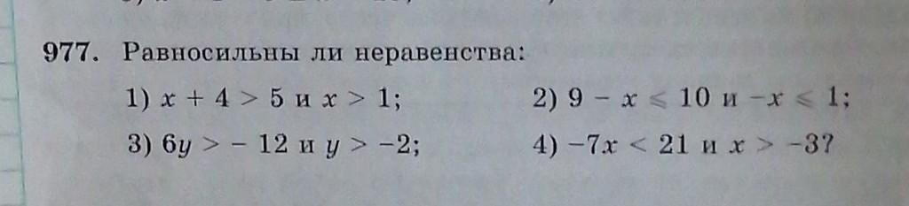 Ответ: -х≤1 = -х≤1; неравенства равносильны.