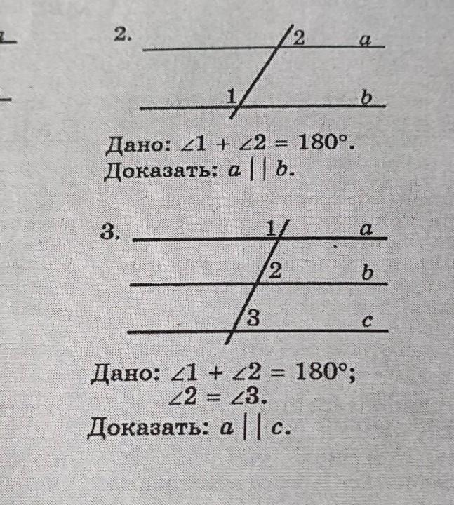 2)При пересечении 2 прямых a и b секущей , сумма односторонних углов = 180 градусов. Угол 1= углу 2 .Значит угол 1 и угол 2- односторонние, тогда а ll b