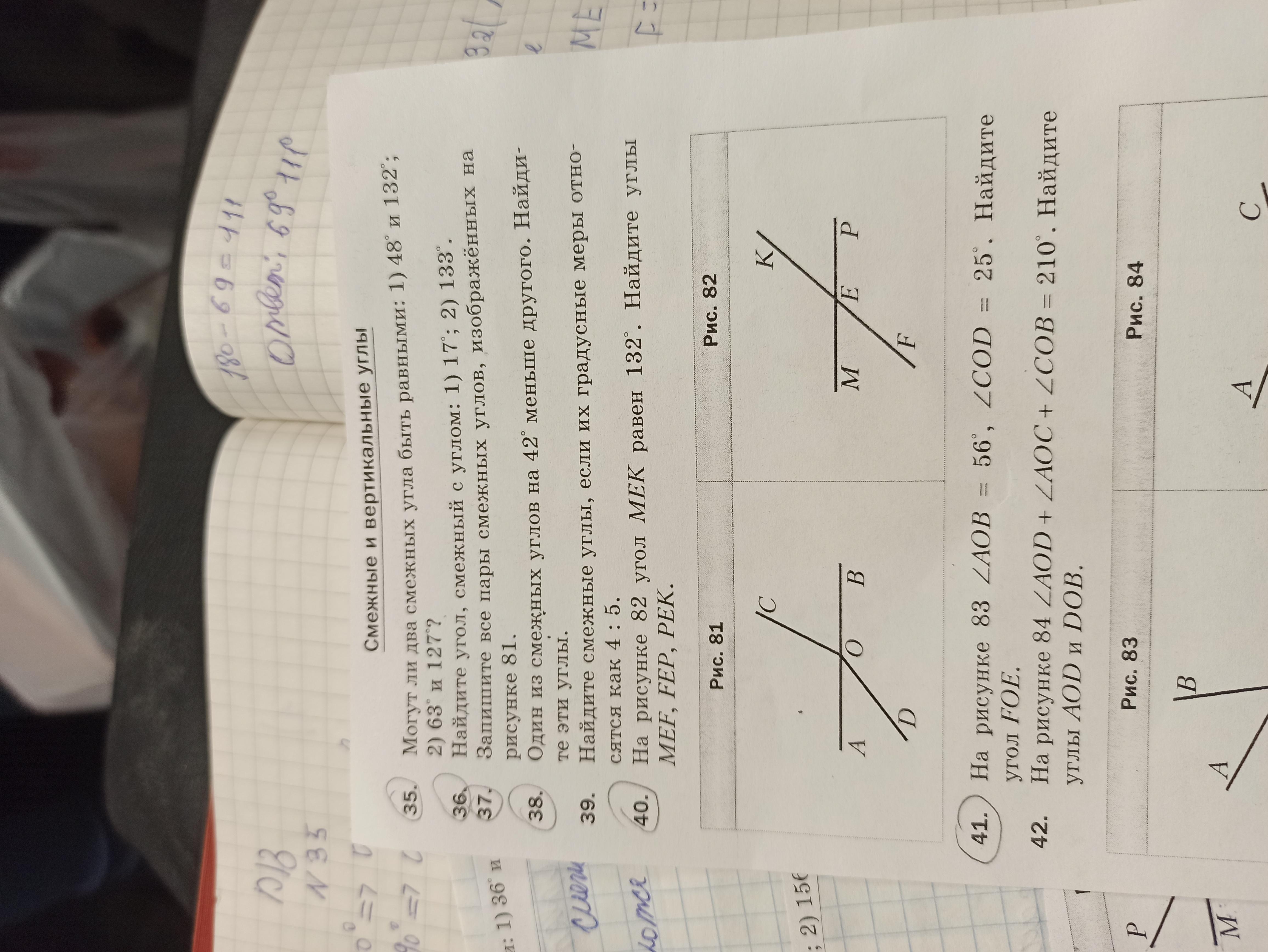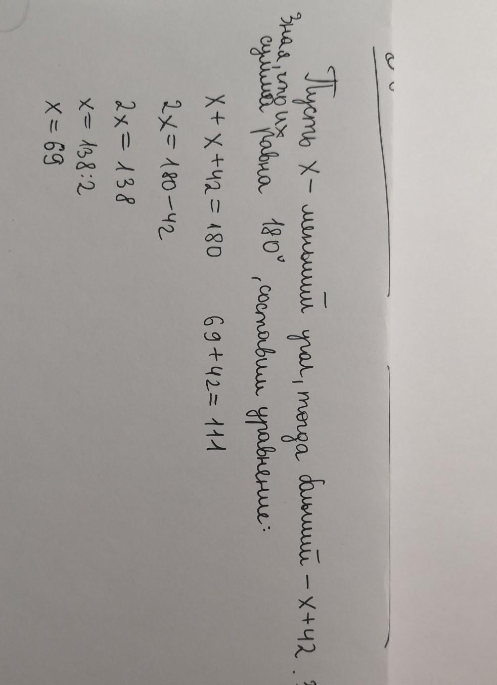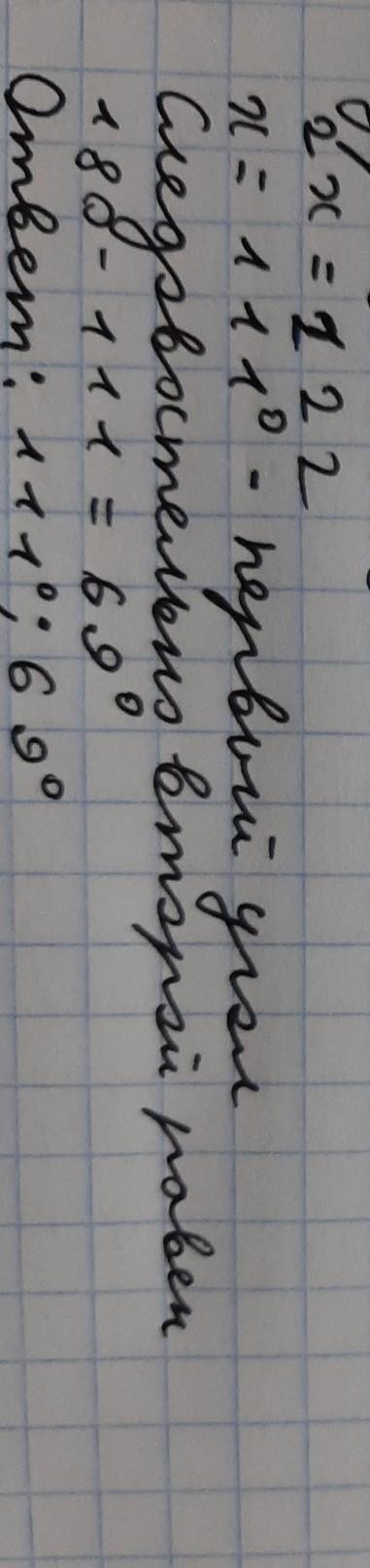 первый угол равен 111, второй 69 градусов