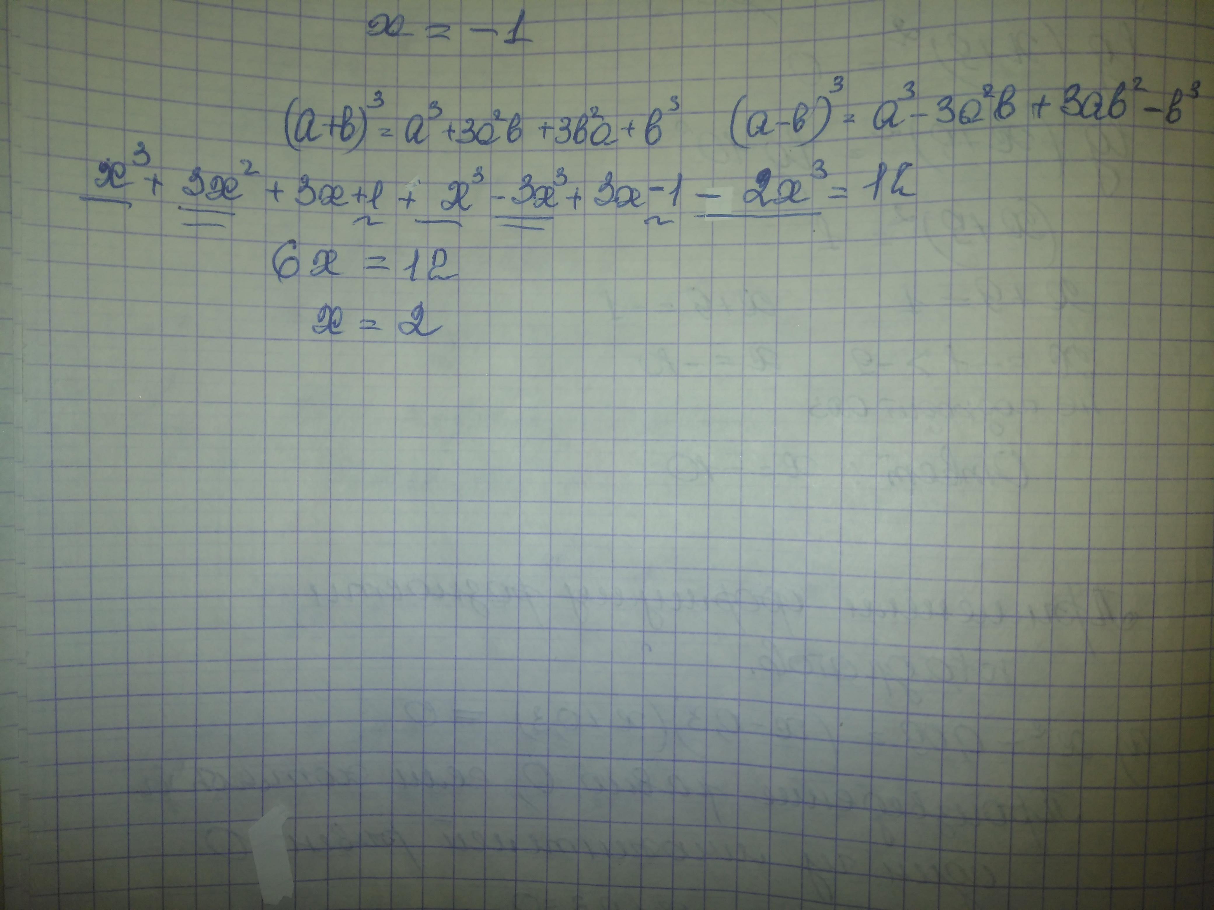 х³+3х²+3х+1+х³-3х²+3х-1-2х³=12 - сокращаем проивоположные выражения, например ±3х, ±1 и т.д.