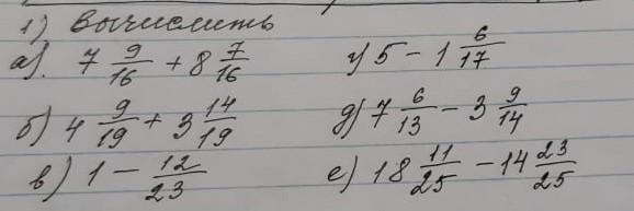 Д) 7 6/13 - 3 9/14 = 7 84/184 - 3 117/184 = 3 151/184