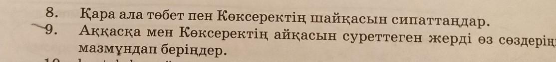 9)Көксерек аққасқамен айқасты.Аққасқа жөнімен кетіп қалды. Көксерек бостандықты қатты ансады.Көксерек қожайыннын өлтіріп, бостандыққа шығады.