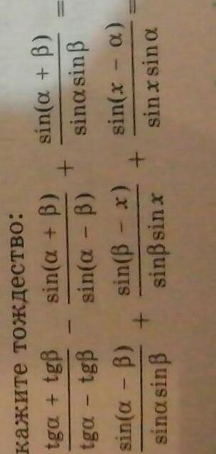 1) tgA+tgB/tgA-tgB - sin(A+B)/sin(A-B) + sin(A+B)/sinAsinB - распишем значения тангенса: