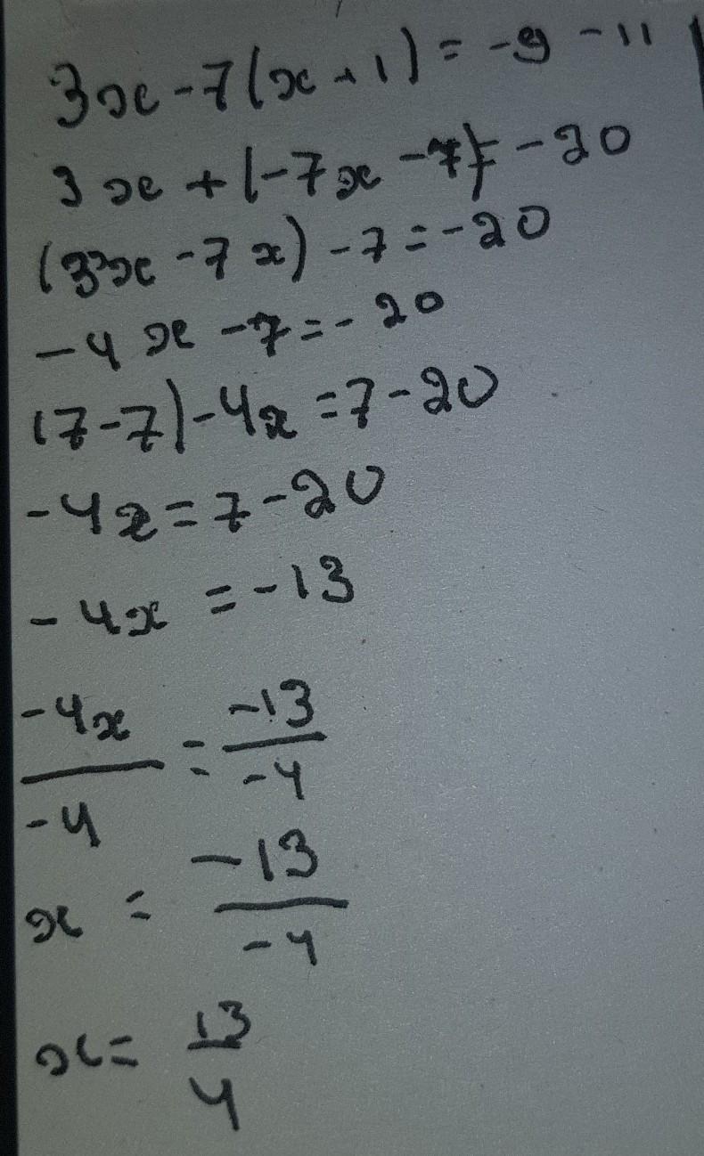 8. Решите уравнение: 3x - 7 (x + 1) = -9 - 11