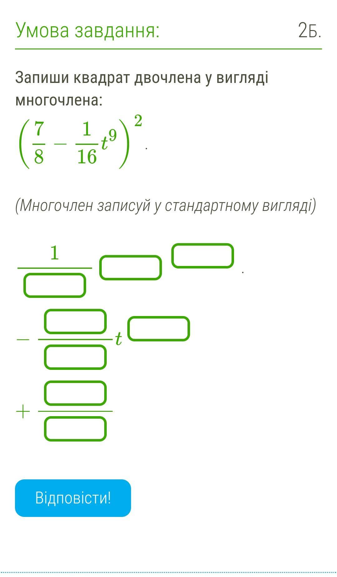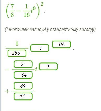 (7/8-1/16t⁹)²=(7/8)²-2(7/8)(1/16)+(1/16)²=49/64-7t ⁹/64+(1/216)t¹⁸=