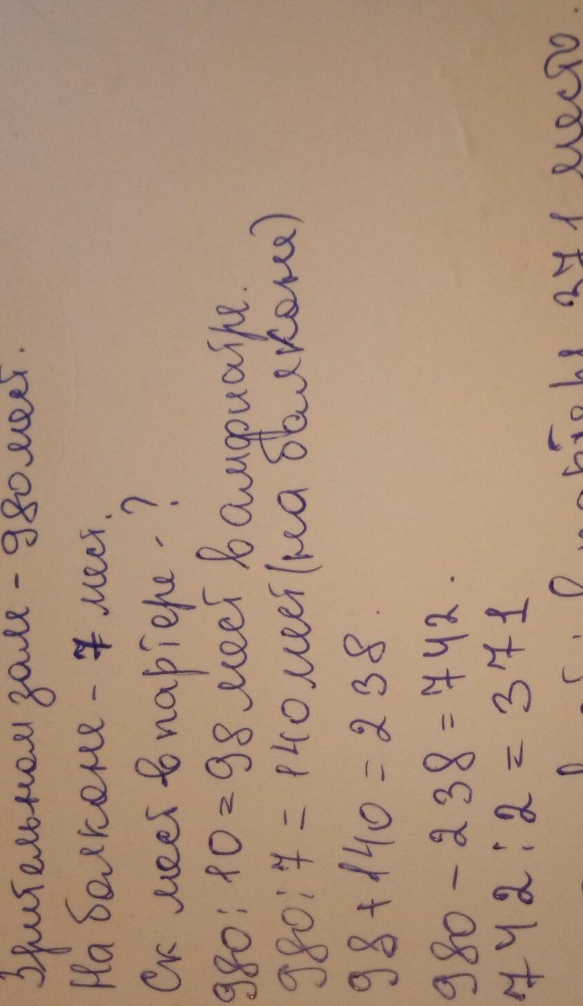 1) 980 : 7 = 140 (мест) - мест на балконе.