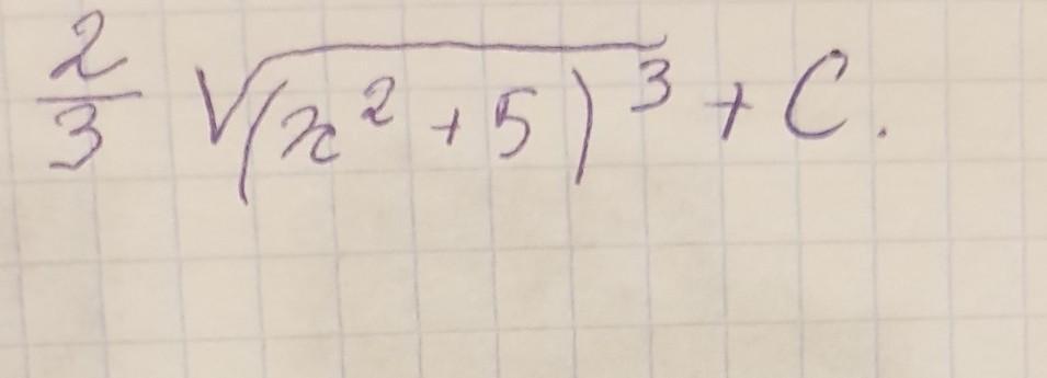 y'=2/3*3/2*(x^2+5)^(1/2)*2x=2x/ Vx^2+5 (x^2+5 стоит по корнем)