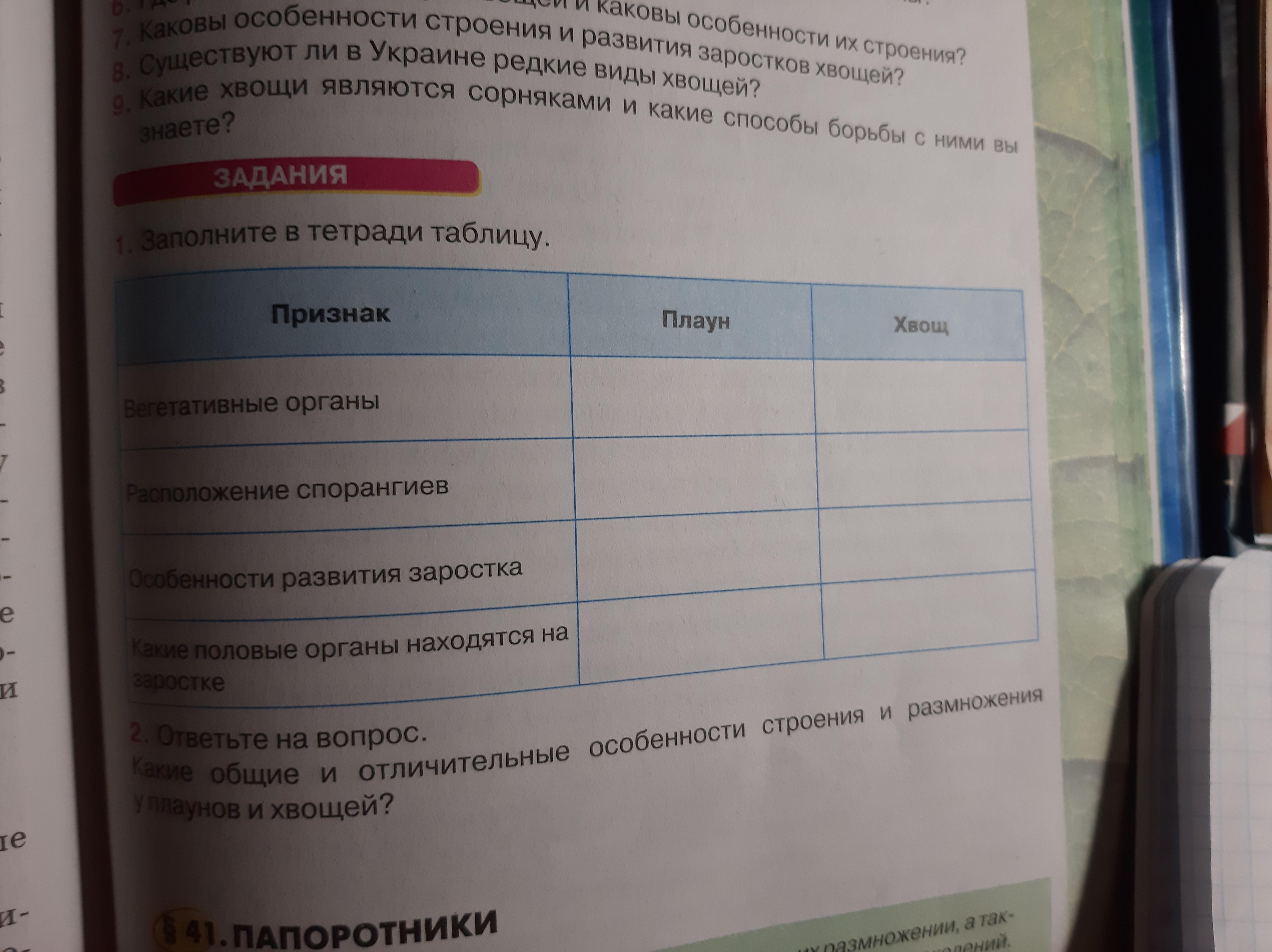 1 Заполните в тетради таблицу