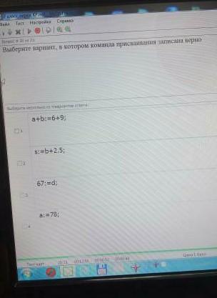 выбирите вариант,в котором команда присваивания записана верно.помогите пожалуйста!!!!!
