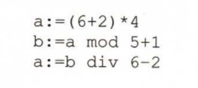 a := b div 6 - 2 // a = 3 div 6 - 2 = 0 - 2 = -2