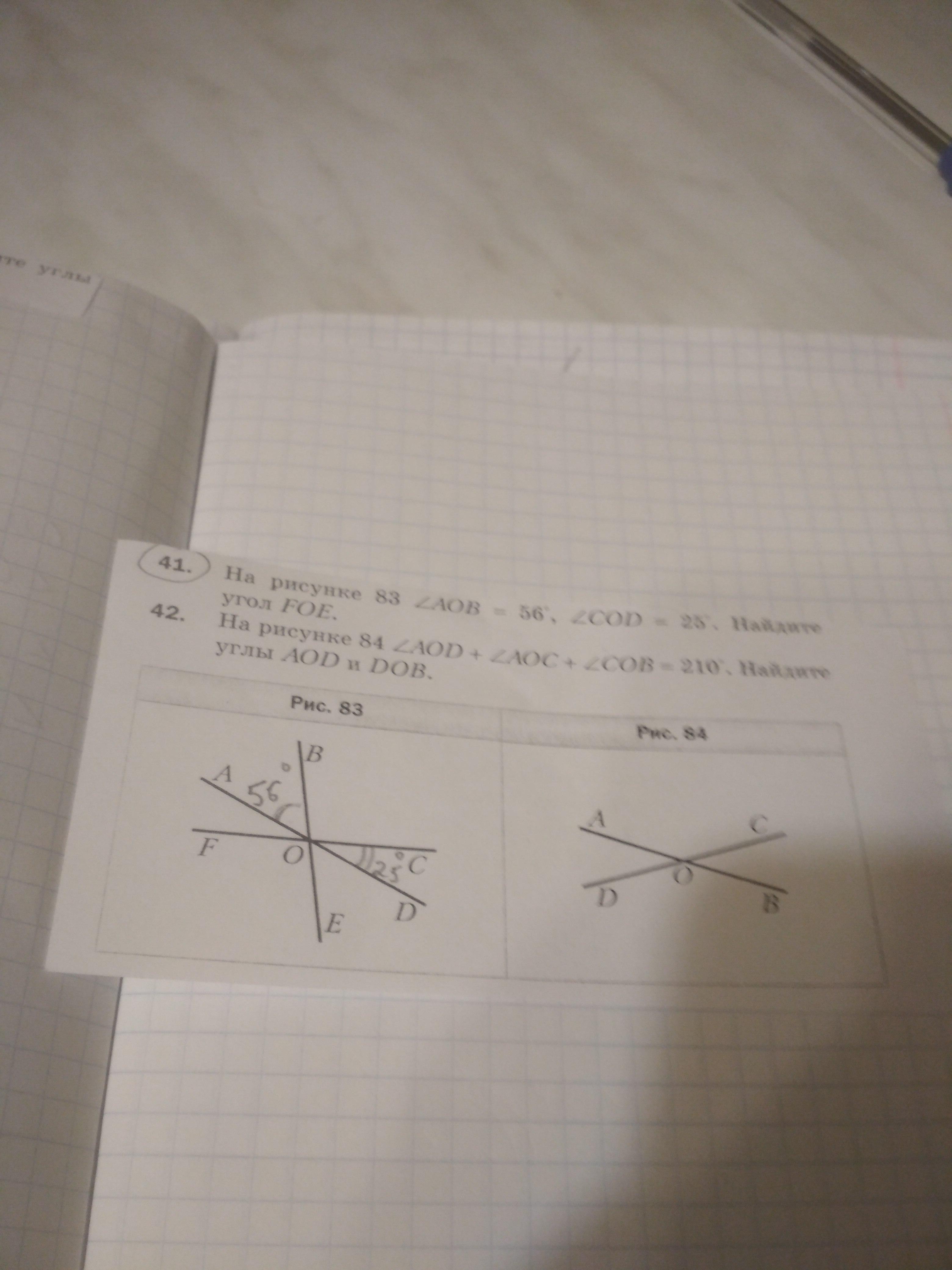 углы АОВ = ЕОD = 56, так как они вертикальные